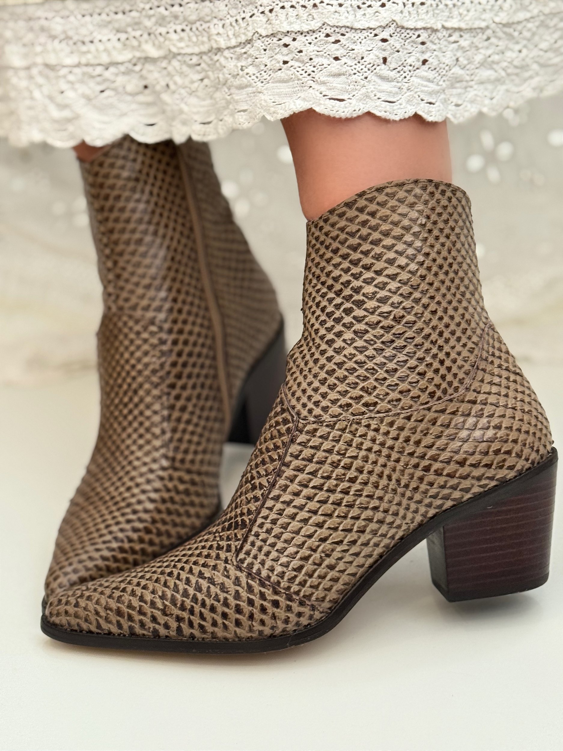 Material: Couro legítimo pelica estamparia digital texturizado snake com salto fachetado também em couro