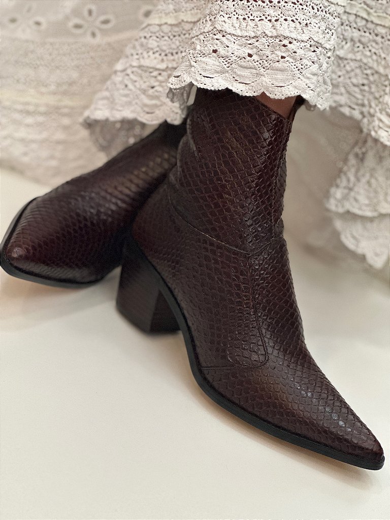 Material: Couro legítimo pelica estamparia digital texturizado snake com salto fachetado também em couro