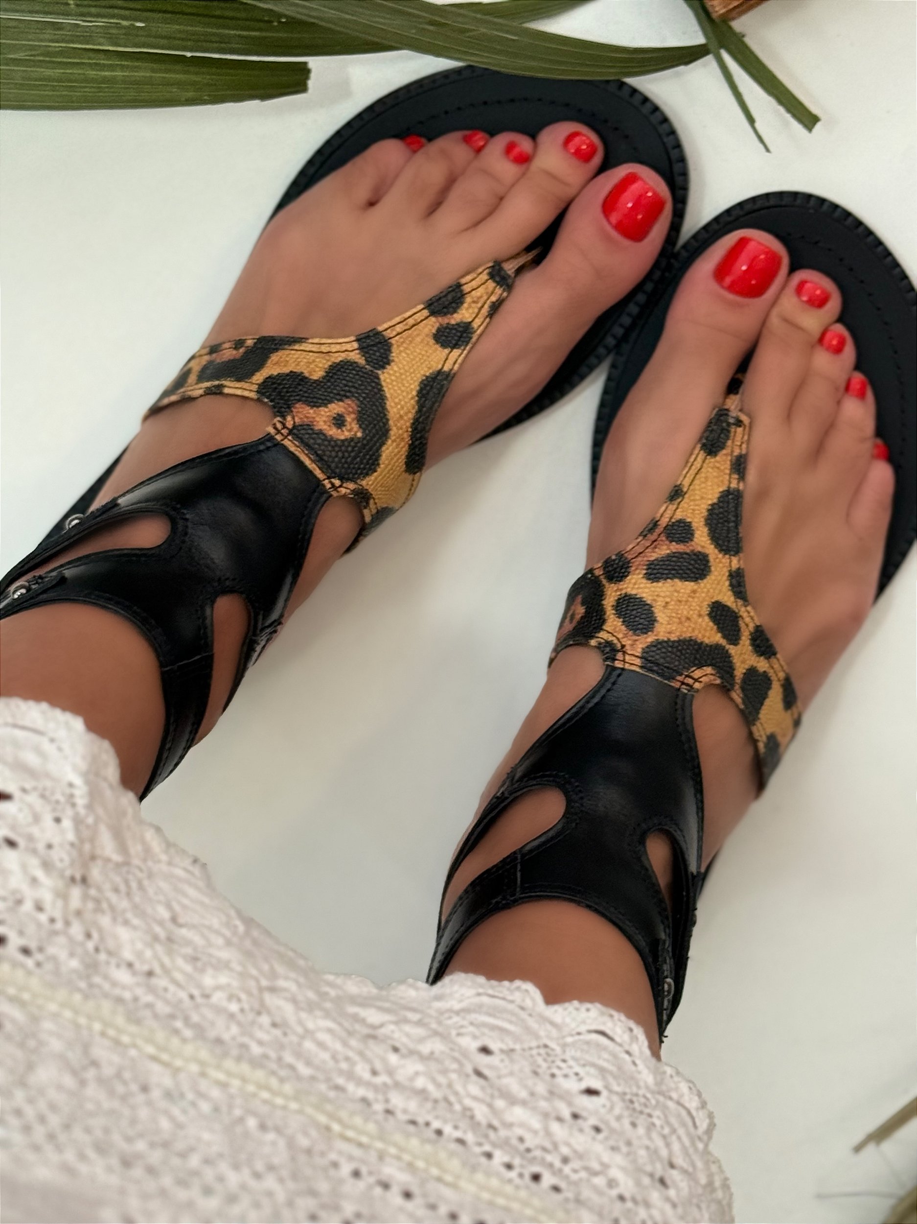 Rasteira Gaya Preto com detalhe em Estamparia Digital