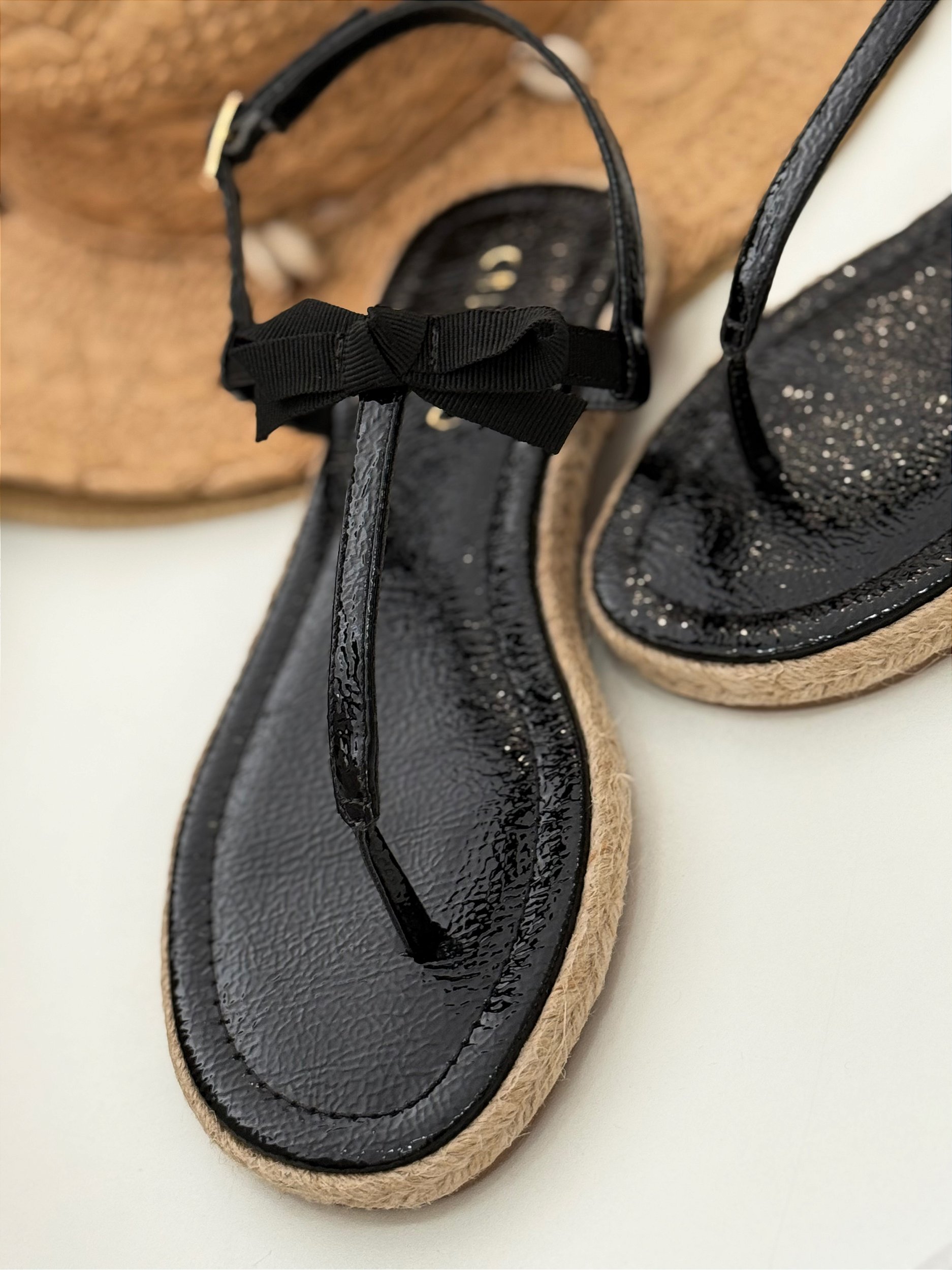 Material: Verniz Molhado com detalhe em enfeite laço de gorgulhão e detalhe na sola de corta natural