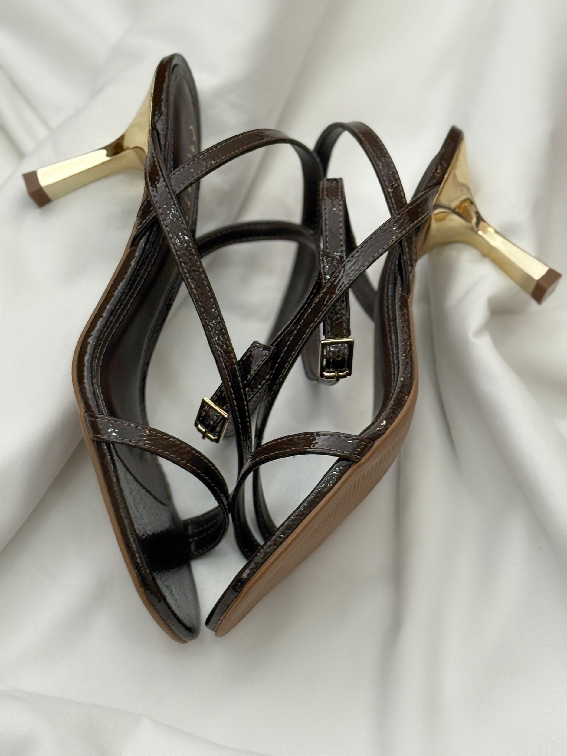 Imagine uma sandália que é pura poesia em forma de calçado, seu salto taça elegante e sofisticado, curvatura leve e delicada que confere equilíbrio entre minimalismo e o glamour. Cada detalhe transmite uma sensação de leveza e feminilidade, as tiras finas abraçam o pé com graça e precisão, disposta de maneira minimalista, formam linhas delicadas que contornam os pés como se fossem um trabalho artesanal, realçando sua beleza natural. Seu design é descomplicado, mas carregado de intenção: cada linha, cada proporção, parece ter sido pensada para oferecer um visual limpo e atemporal, é uma peça que se adapta perfeitamente ao seu estilo seja um look clássico ou moderno. Aposte nela e se surpreenda!
