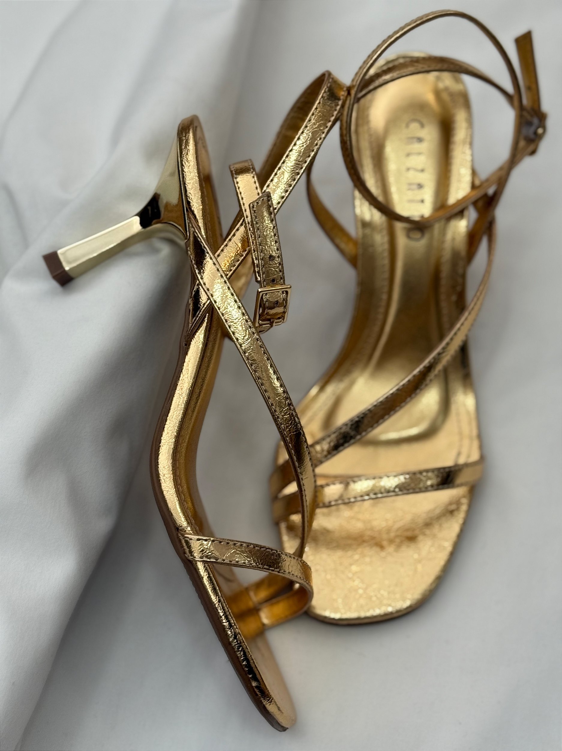 Imagine uma sandália que é pura poesia em forma de calçado, seu salto taça elegante e sofisticado, curvatura leve e delicada que confere equilíbrio entre minimalismo e o glamour. Cada detalhe transmite uma sensação de leveza e feminilidade, as tiras finas abraçam o pé com graça e precisão, disposta de maneira minimalista, formam linhas delicadas que contornam os pés como se fossem um trabalho artesanal, realçando sua beleza natural. Seu design é descomplicado, mas carregado de intenção: cada linha, cada proporção, parece ter sido pensada para oferecer um visual limpo e atemporal, é uma peça que se adapta perfeitamente ao seu estilo seja um look clássico ou moderno. Aposte nela e se surpreenda!