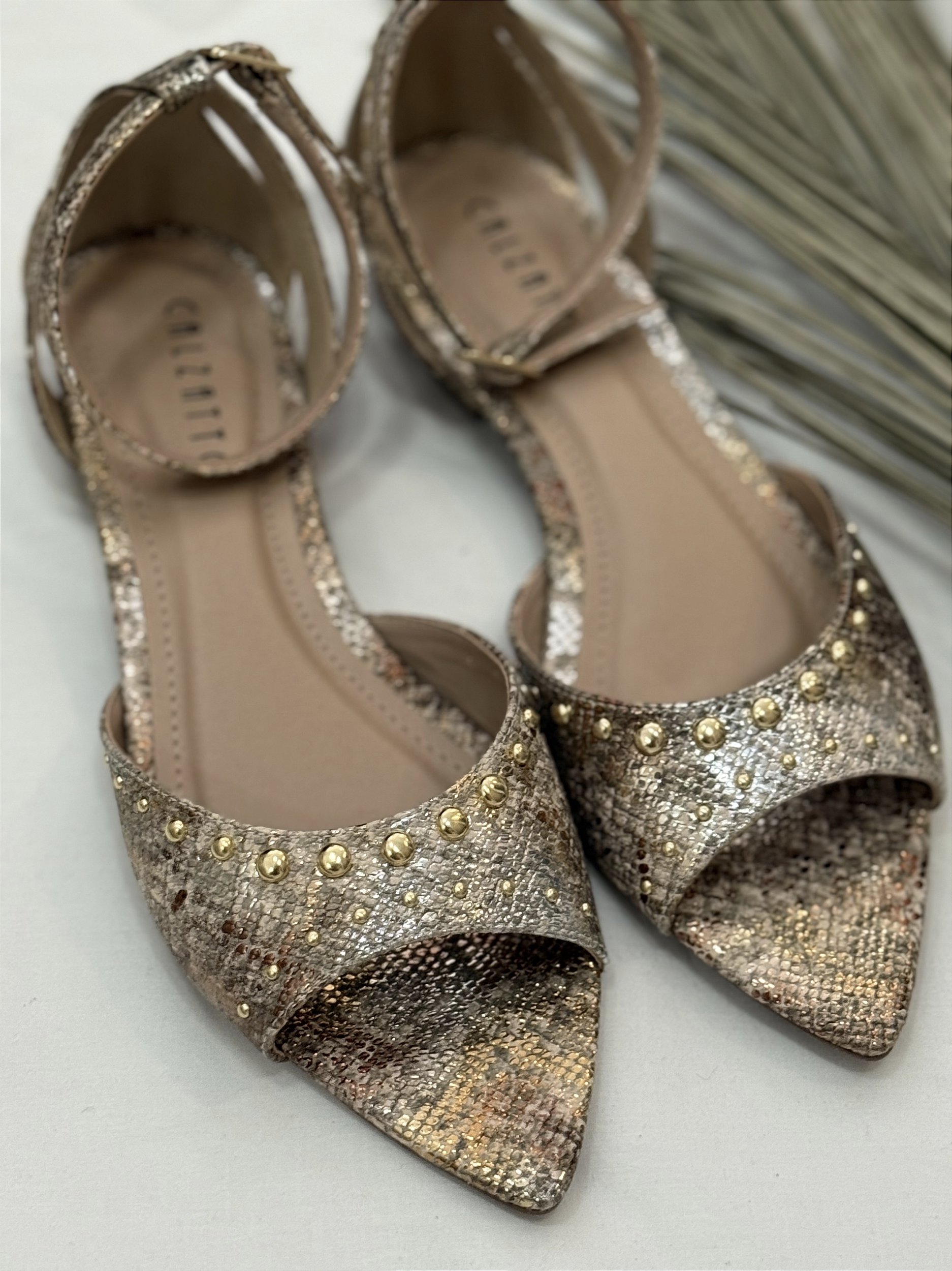 Sandália Joana Dourado Metalizado com detalhes