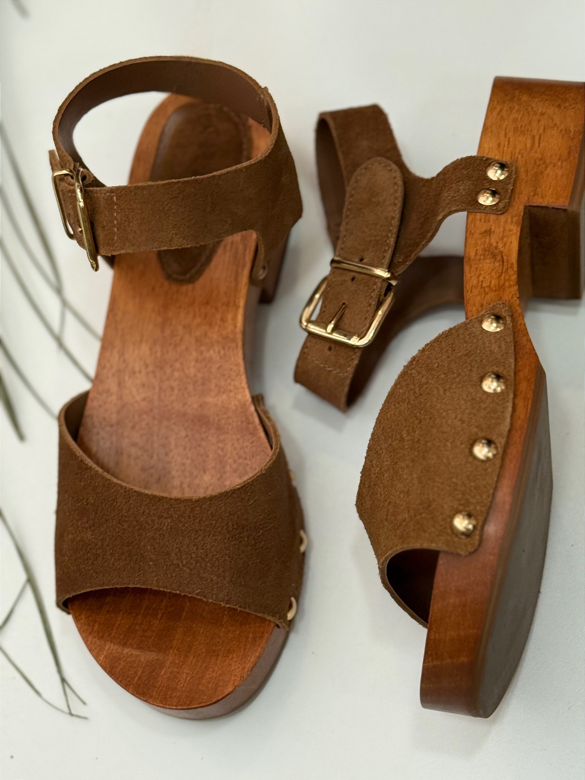 Material: Couro camurça e salto de madeira