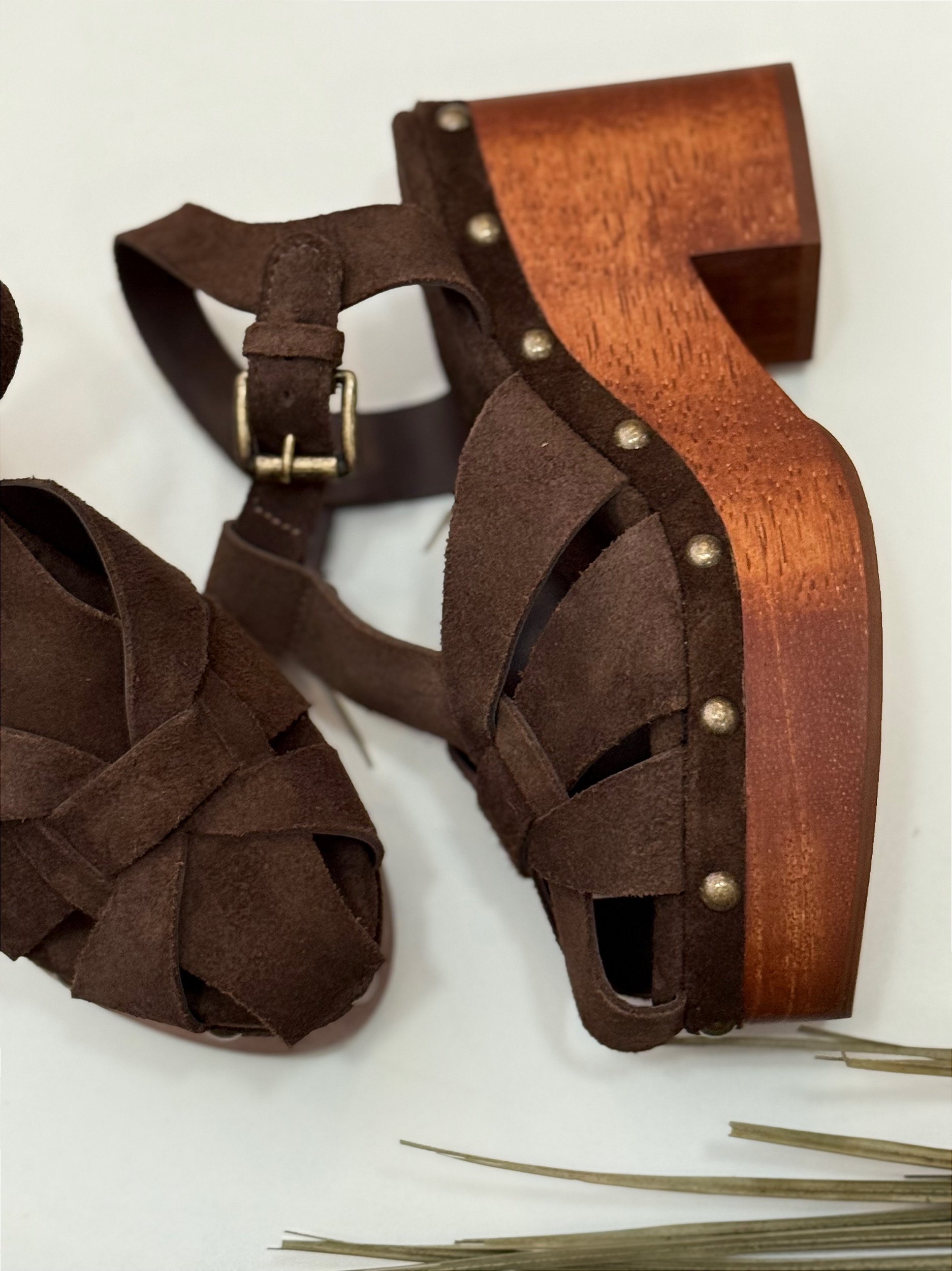 Material: Couro Camurça e salto de madeira