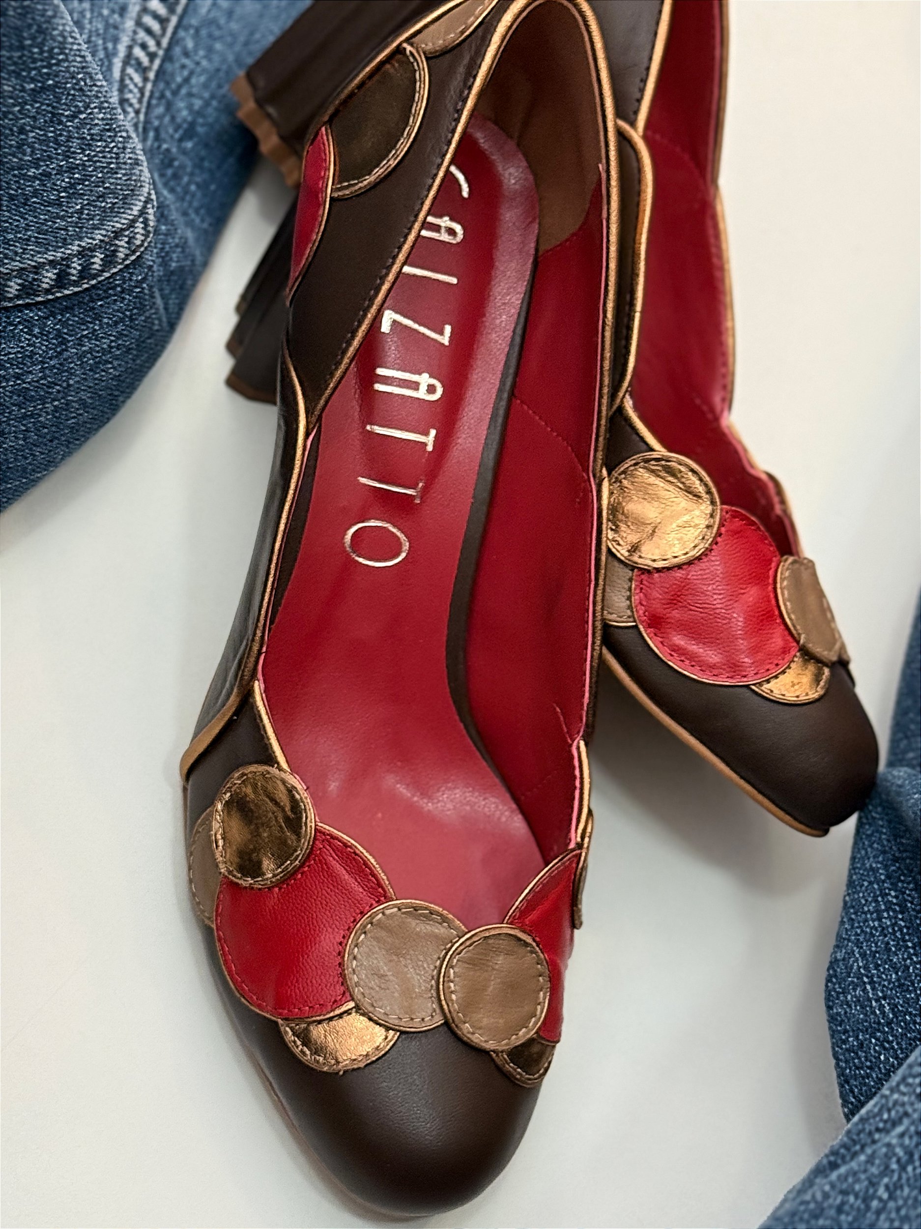 Scarpin Alexia Vermelho, Café e Bronze